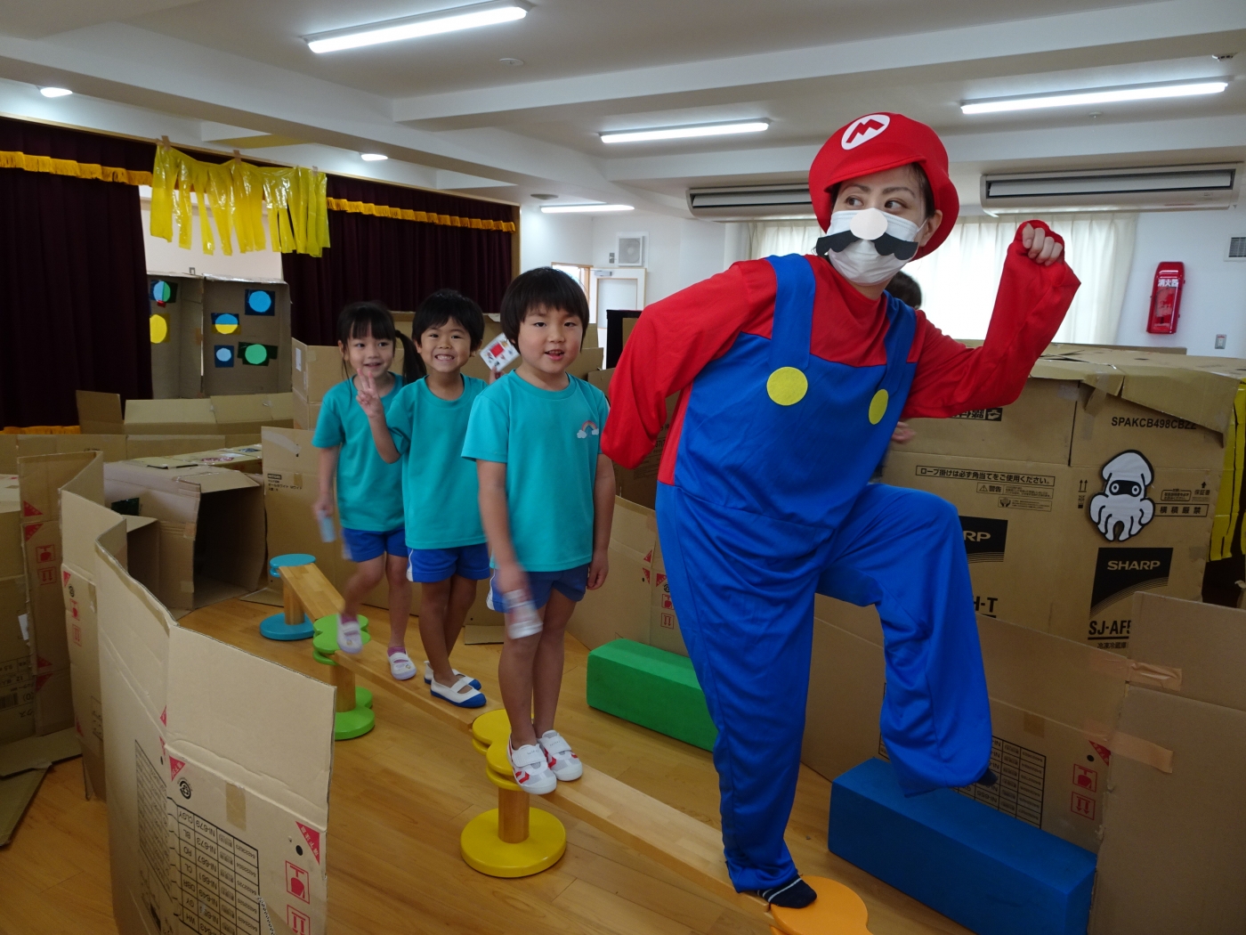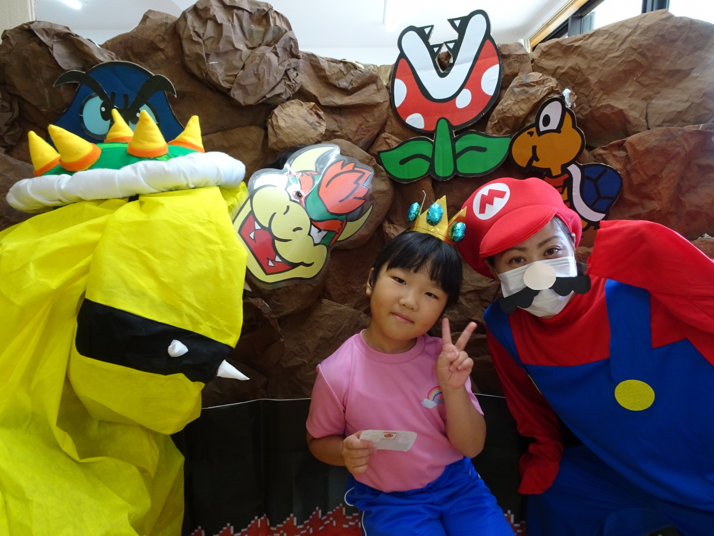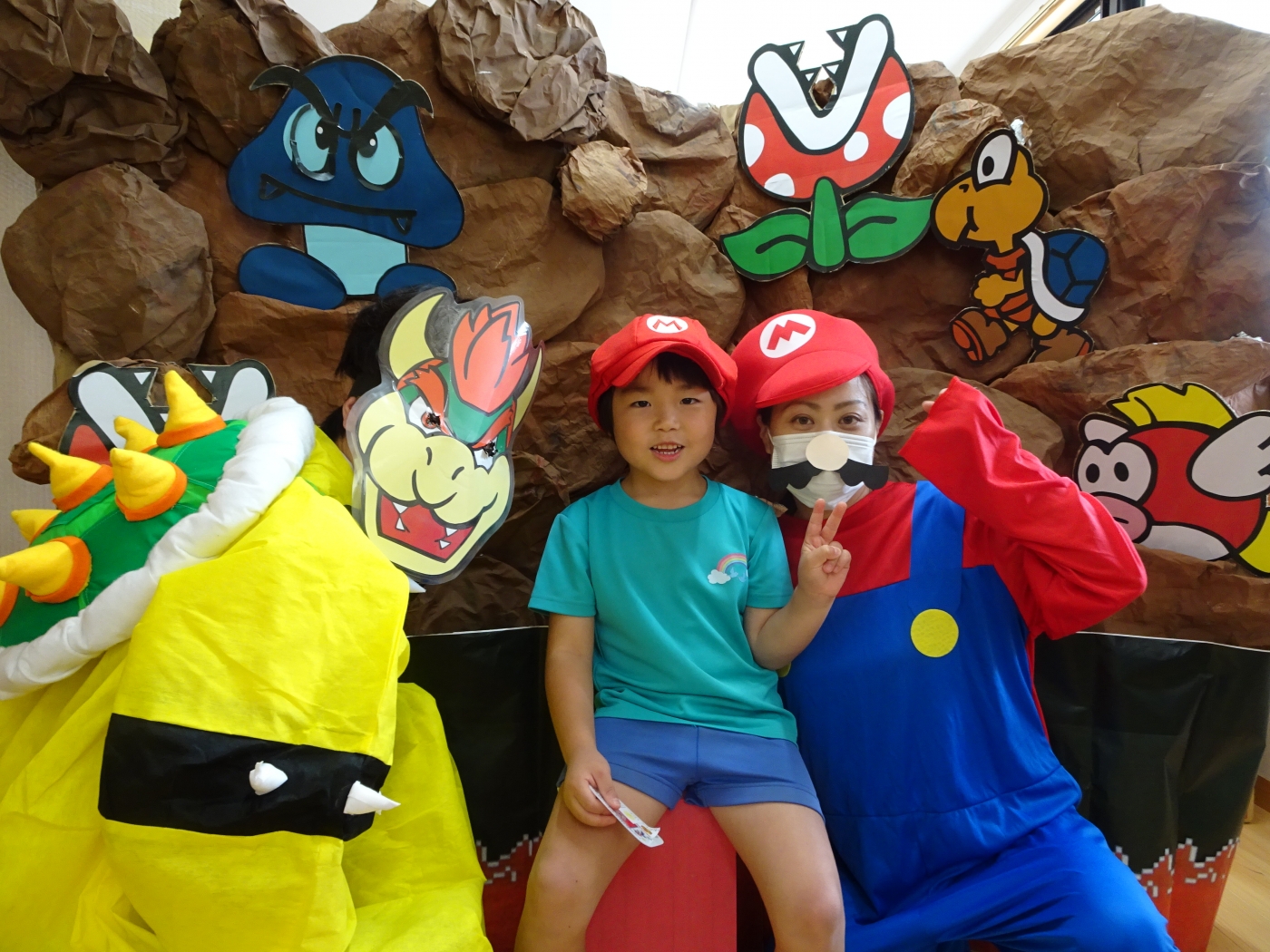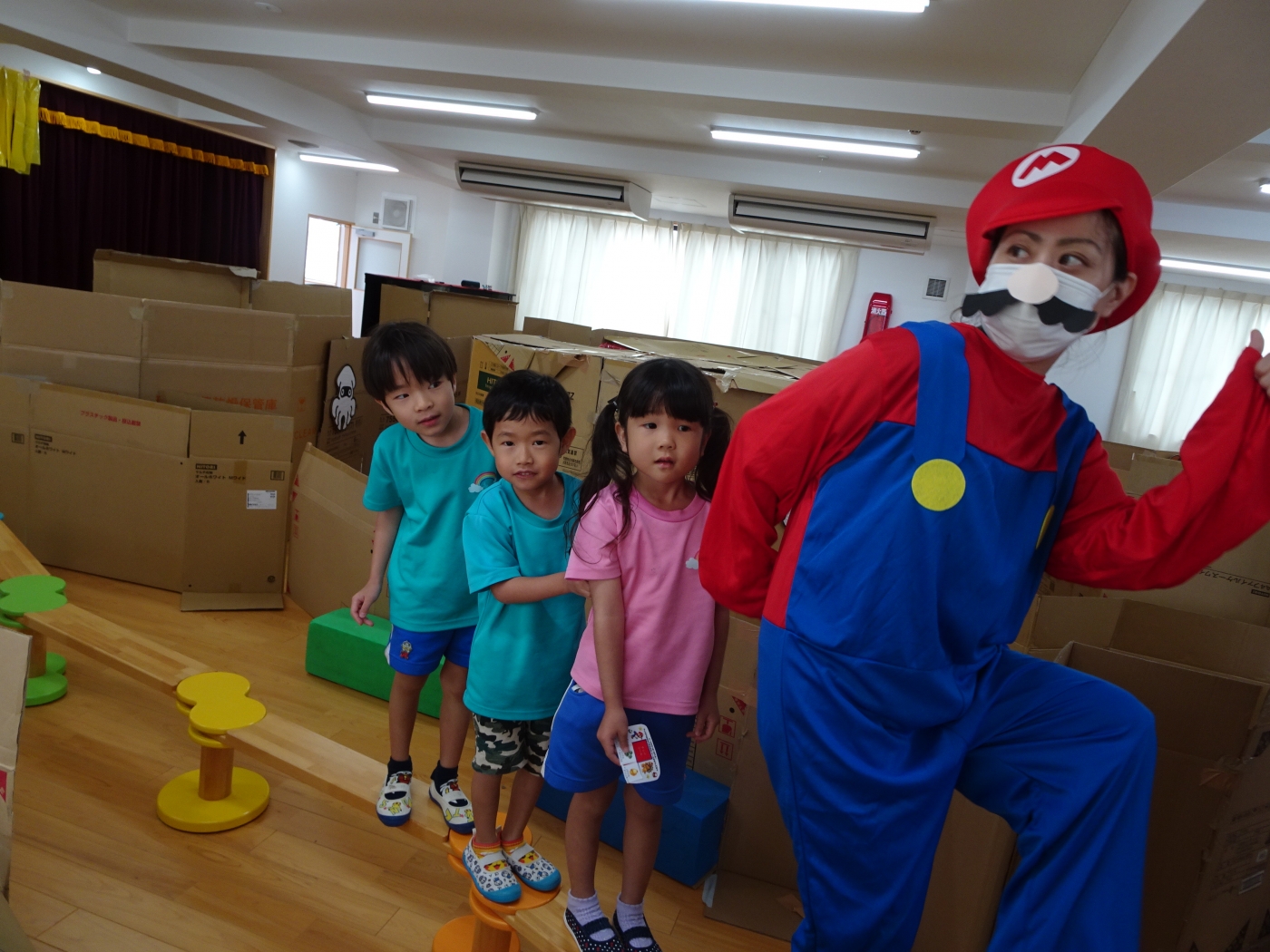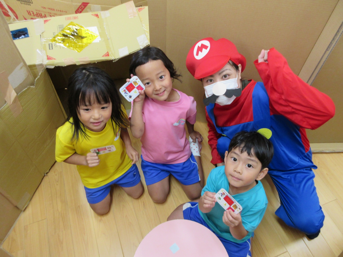 保護者の皆さまへ にじいろブログ お楽しみ保育☆大型迷路☆ 2021.07.17 「スーパーマリオ」の大型スタンプラリー迷路に挑戦!あっちへ行ったり、こっちへ行ったり、狭いトンネルをくぐったら・・・「あれ?またもとに戻ったあ(笑)」と迷うみんなを助けにスーパーマリオが登場!クッパにシールをもらってゴールを目指しました。 . ブログ一覧へ戻る