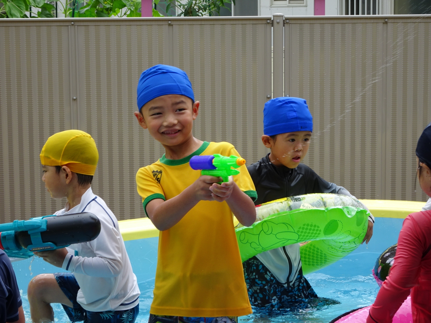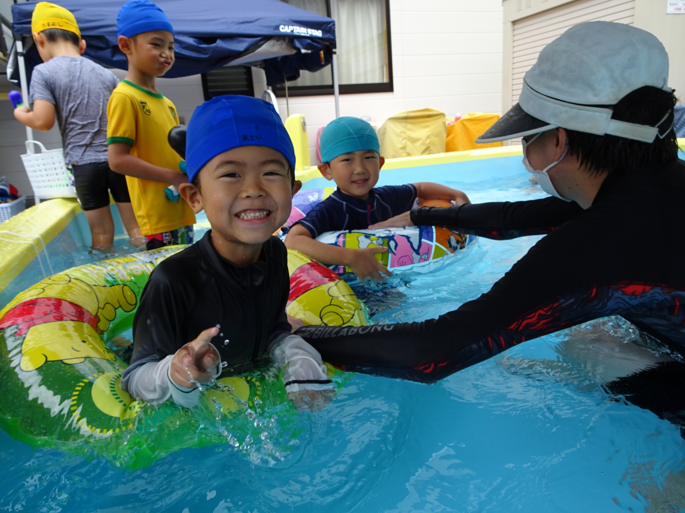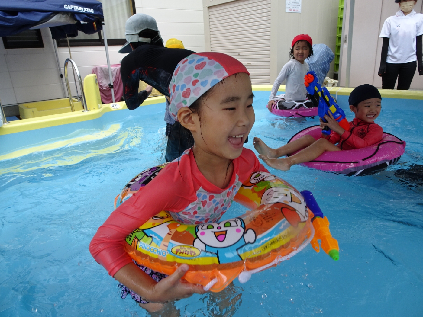 保護者の皆さまへ にじいろブログ お楽しみ保育☆プール遊び☆ 2021.07.17 雨が心配されましたが無事プール遊びができました!グループごとに分かれて、普段使わない浮き輪や水鉄砲を使って思う存分楽しみました! . ブログ一覧へ戻る