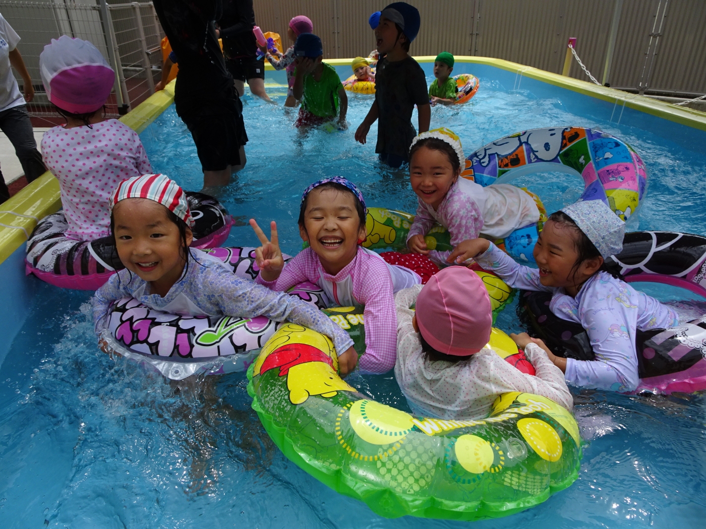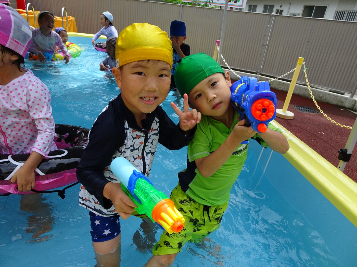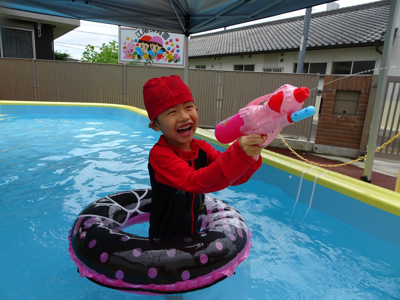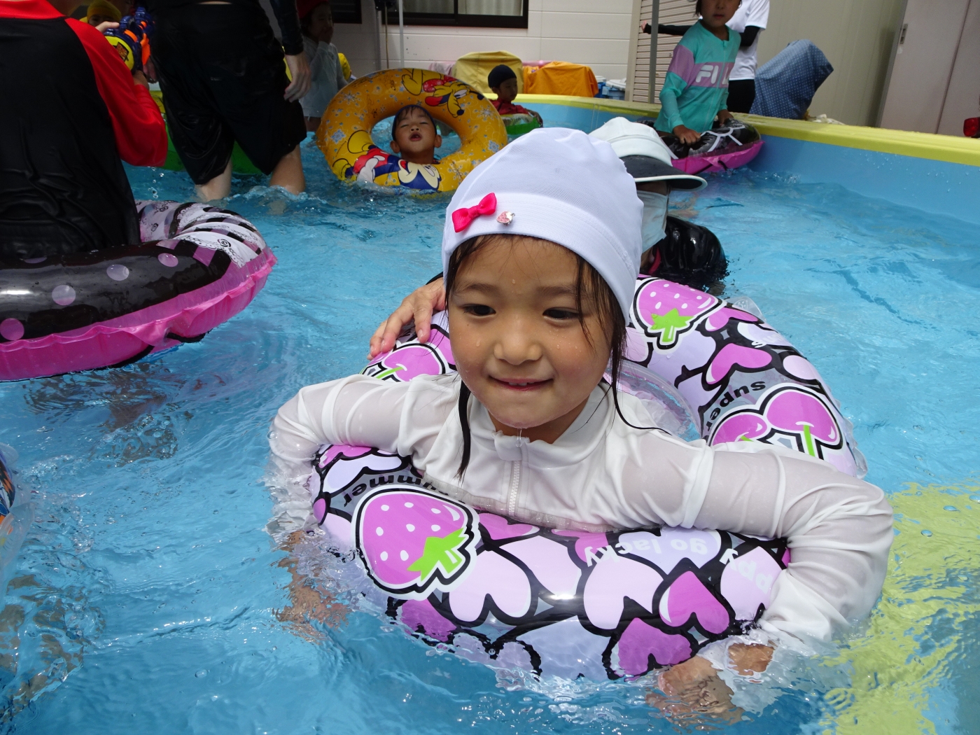 保護者の皆さまへ にじいろブログ お楽しみ保育☆プール遊び☆ 2021.07.17 雨が心配されましたが無事プール遊びができました!グループごとに分かれて、普段使わない浮き輪や水鉄砲を使って思う存分楽しみました! . ブログ一覧へ戻る
