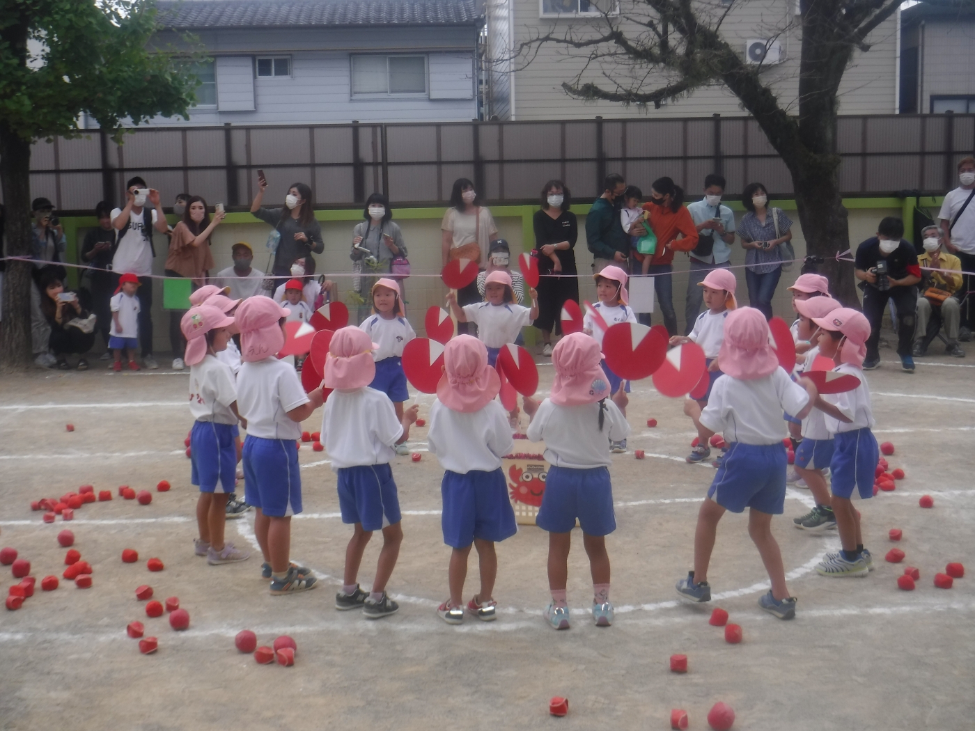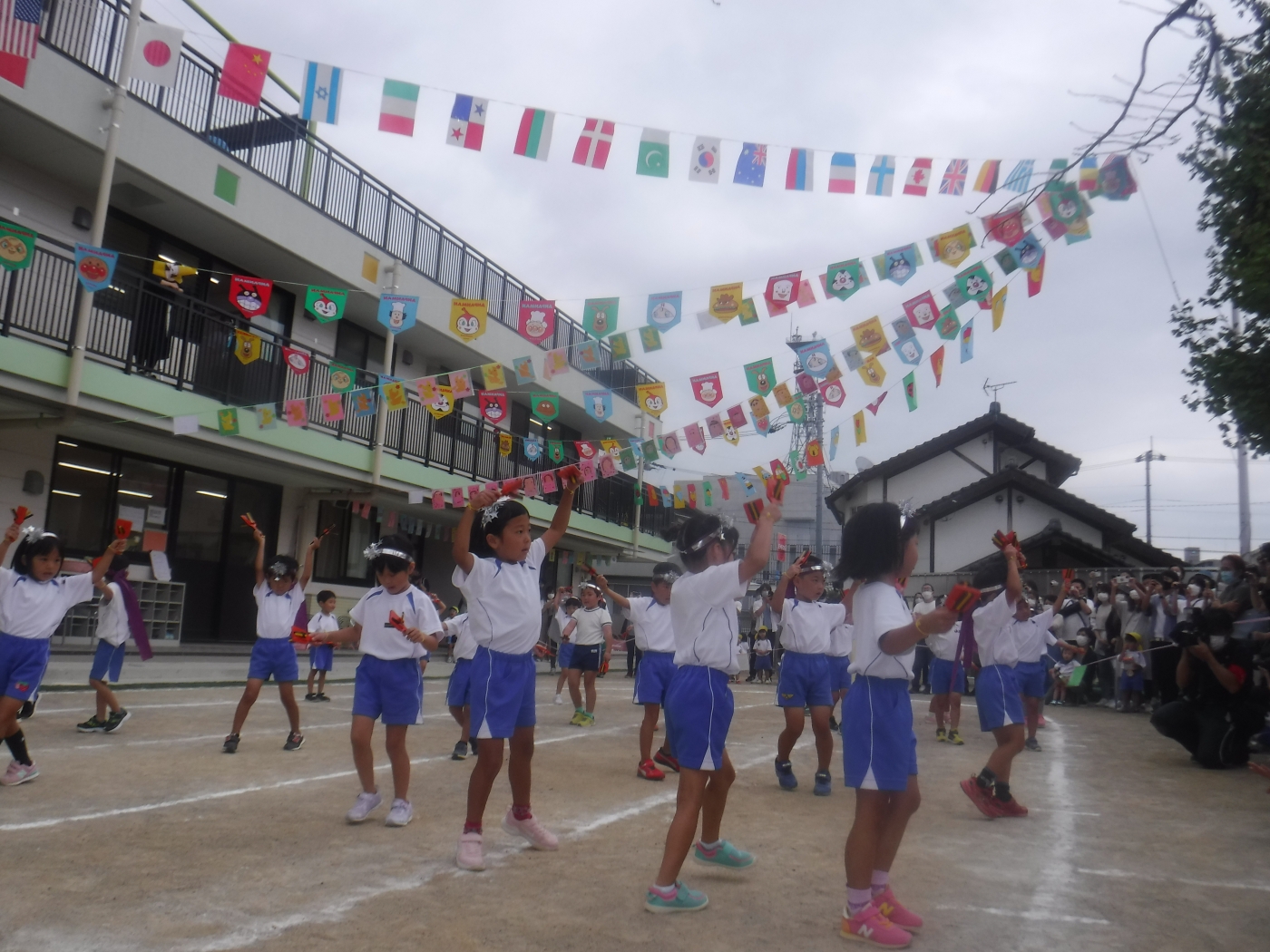 保護者の皆さまへ にじいろブログ がんばったよ‼運動会‼ 2021.10.16 前日にきりん組さんが作った大きなてるてる坊主がお空を見守ってくれ時々雨が降りはしたものの、中断することなく、今年も3部制に分かれて運動会をすることができました。練習中はとても暑く、2回繰り返すとちょっぴり元気がなくなっていた子どもたちもお家の人が見てくれていることでいつもの何倍ものパワーを発揮していました! . ブログ一覧へ戻る