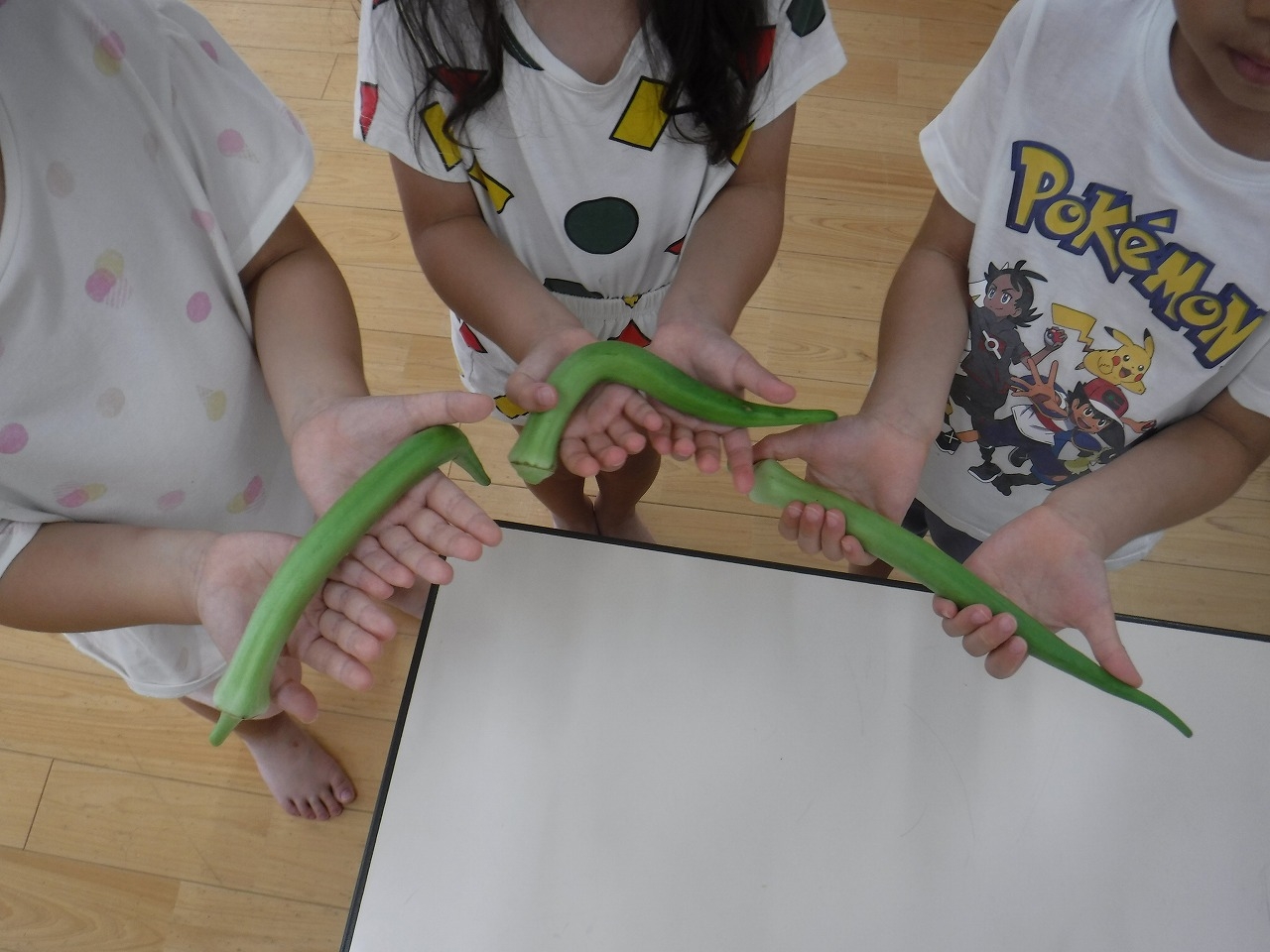 保護者の皆さまへ にじいろブログ 衝撃の巨大オクラ 2022.8.3 「明日採ろうかな・・・」そんな軽い気持ちでおいていただけなのです。そしたらあっという間にこんなに巨大化したオクラ‼野菜スタンプで楽しもうかなぁ~~と話し合っているそうですよ(^^)v . ブログ一覧へ戻る