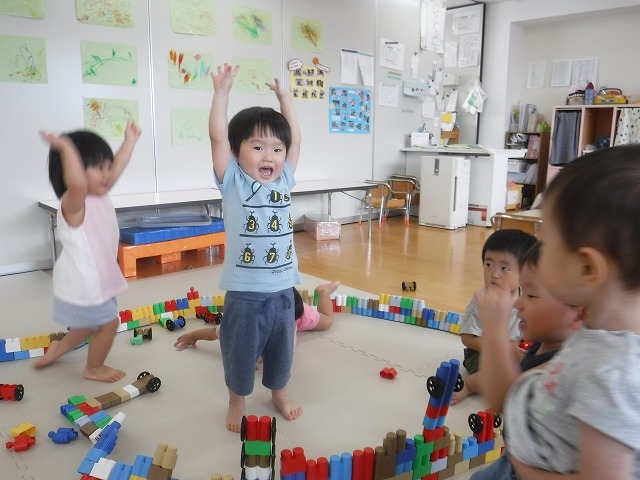 保護者の皆さまへ にじいろブログ あひる組さん(1歳児) 2022.8.29 こちらはあひる組さん(1歳児)お友だちと一緒にあそぶのがとっても楽しいね♪可愛らしい関わりもどんどん増えてきました(^^)/ . ブログ一覧へ戻る