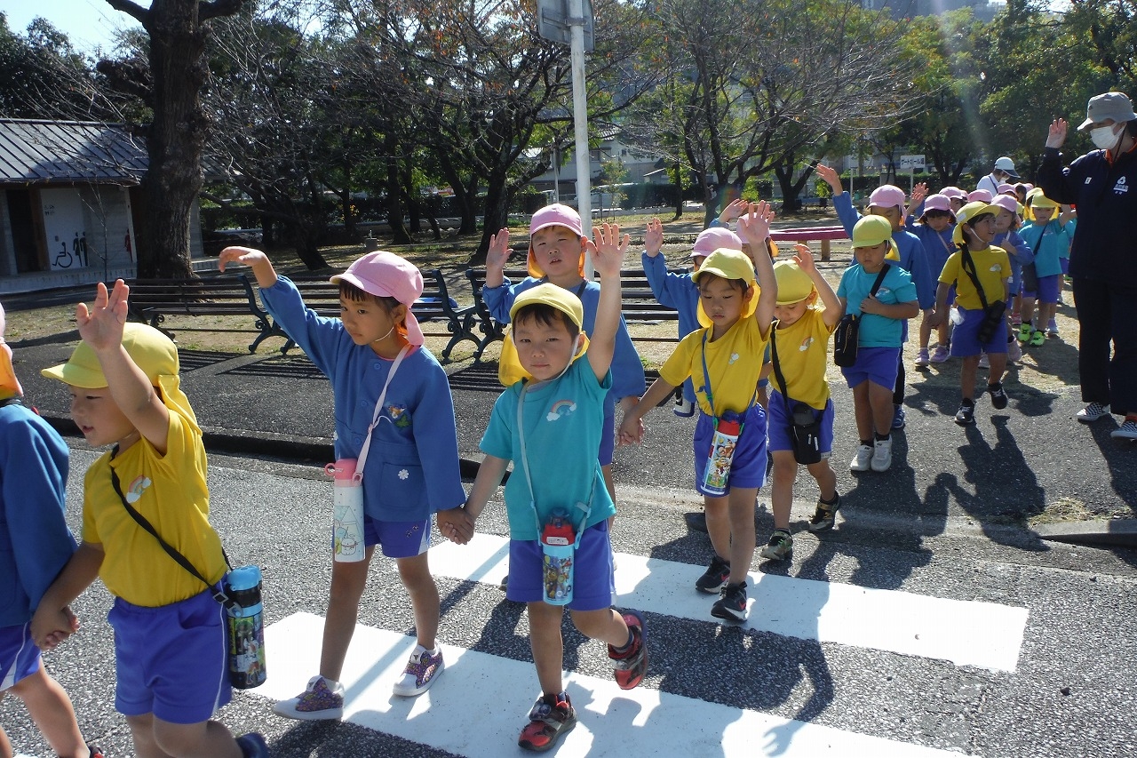 保護者の皆さまへ にじいろブログ 園外保育楽しかったね♪(年中・年長) 2022.11.8 比島交通公園にあそびに行きました!きりん組さんは、ぞう組のお兄さんお姉さんに手を繋いでもらって頑張って歩きました♪「がんばれ!」「信号が青になってからね!」と優しく声をかけるぞう組さんがとっても頼もしかったですよ(^O^)/いっぱい遊んだ後は、園に戻り美味しいお弁当を食べました★みんな大喜び(*^^*)♡♡♡お弁当作りありがとうございました‼ . ブログ一覧へ戻る